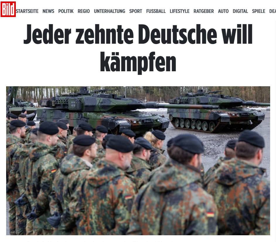 В случае войны только каждый десятый немец был бы готов защищать Германию с оружием в руках. Таковы результаты опроса, проведенного международной аналитической компанией YouGov, пишет Bild.