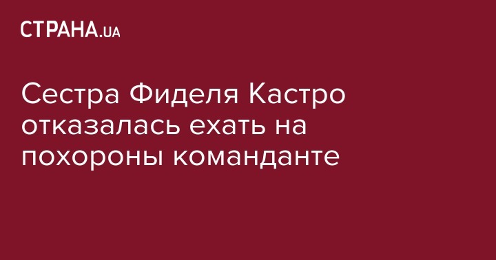 Сестра Фиделя Кастро Хуанита, живущая в Майами (США, Флорида) отказалась ехать на похороны брата на Кубу. Такое заявление она сделала испаноязычной газете El Nuevo Herald, издающейся в Майами.