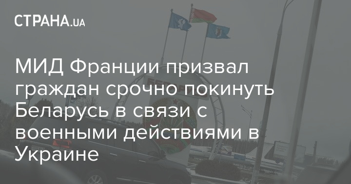 "В условиях вооруженного вторжения России в Украину и закрытия белорусского воздушного пространства любые поездки в Беларусь формально не приветствуются. Французов в Беларуси призывают без промедления покинуть страну автомобильным транспортом, через погранпереходы с Литвой, Польшей или Латвией. В случае необходимости пассажиры, прибывающие воздушным транспортом, должны оформить выездную визу в службах МВД Республики Беларусь", - сообщает МИД Франции.
