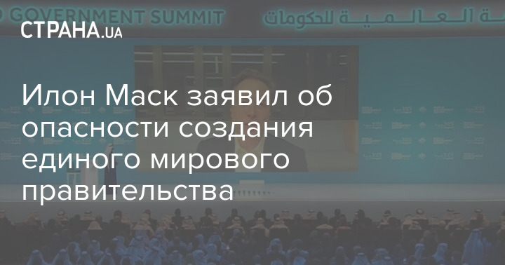 Американский предприниматель Илон Маск заговорил об опасности создания единого мирового правительства. Об этом он заявил на Всемирном правительственном саммите в Дубае.