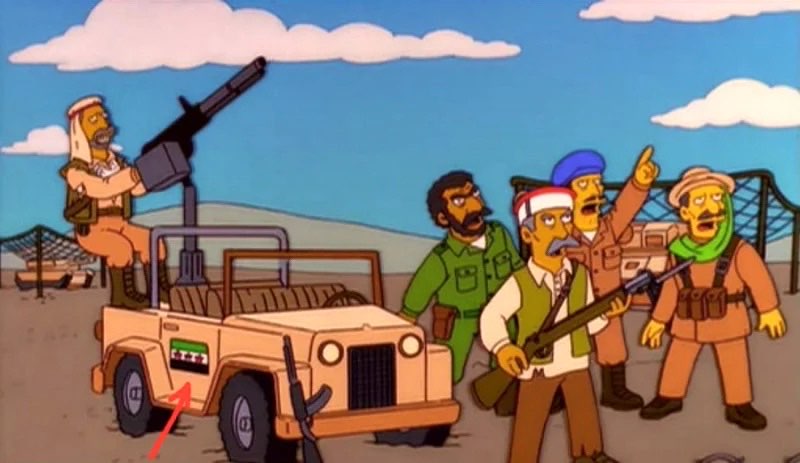 Барт создаёт группу "Толпа хулиганов" на деньги ВМС США и снимает клип, в котором они наносят удары по арабским солдатам с американских самолётов. В одном моменте бомба падает на внедорожник сирийском оппозиции, на двери которого нарисован очень похожий флаг сирийской оппозиции.