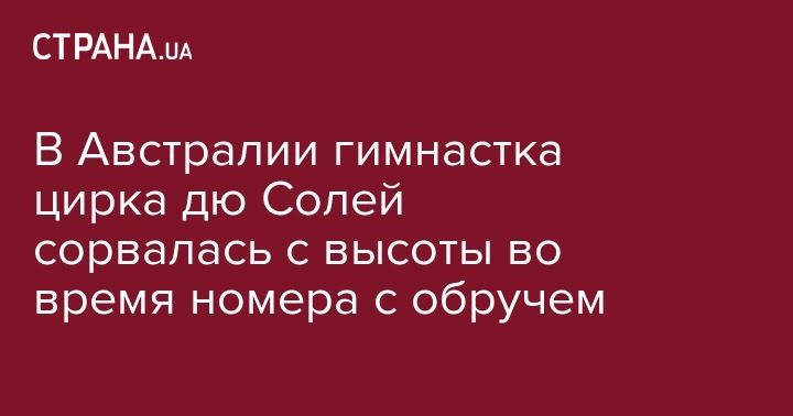 В воскресенье, 27 ноября, в австралийском городе Брисбене артистка Cirque du Soleil ("Цирк солнца") Лиза Скиннер сорвалась с высоты в пять метров при исполнении своего традиционного номера с обручем. Об этом сообщает ren.tv