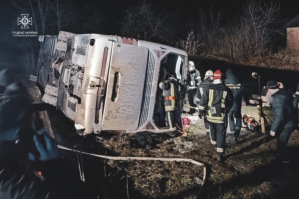 У Тернополя перевернулся автобус с пассажирами, которые ехали из Буковеля. Есть жертвы. Фото