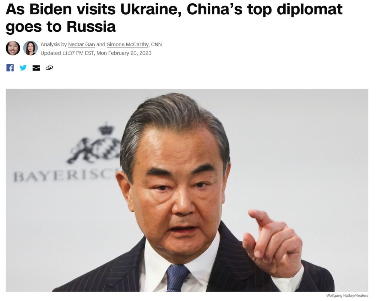 Телеканал обращает внимание на синхронность визитов Байдена в Киев и главы китайской дипломатии Ван И в Москву. "Китай и Россия близки как никогда с тех пор, как их лидеры объявили о "безграничной дружбе" год назад. - отчасти из-за их общей враждебности к Соединенным Штатам", - говорится в статье.