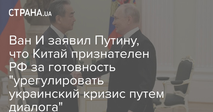 Глава канцелярии комиссии по иностранным делам ЦК КПК, член Политбюро ЦК Компартии Китая Ван И во время встречи с президентом РФ Владимиром Путиным 22 февраля заявил, что Китай признателен России за готовность "урегулировать украинский кризис путем диалога и переговоров"