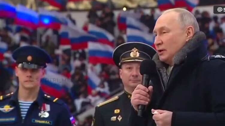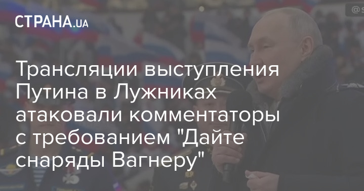 Трансляции выступления президента РФ Владимира Путина на митинге в Лужниках атаковали комментаторы с требованием "дать снаряды Вагнеру".
