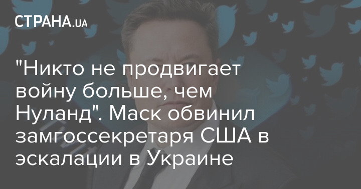 Американский бизнесмен и владелец социальной сети Twitter Илон Маск обвинил заместителя госсекретаря США Викторию Нуланд в эскалации конфликта в Украине.