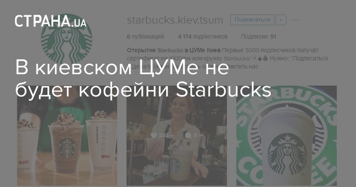 В связи с официальным открытием 3-4 декабря ЦУМа на Крещатике в Киеве - активизировались интернет-мошенники. В социальных сетях создали аккаунты якобы всемирно известной кофейни Starbucks и просят присоединиться к сообществу, расшарить (распространить) пост и получить подарок к открытию кафе в Центральном универмаге. "Страна" решила узнать будет ли культовое заведение в киевском ЦУМе.