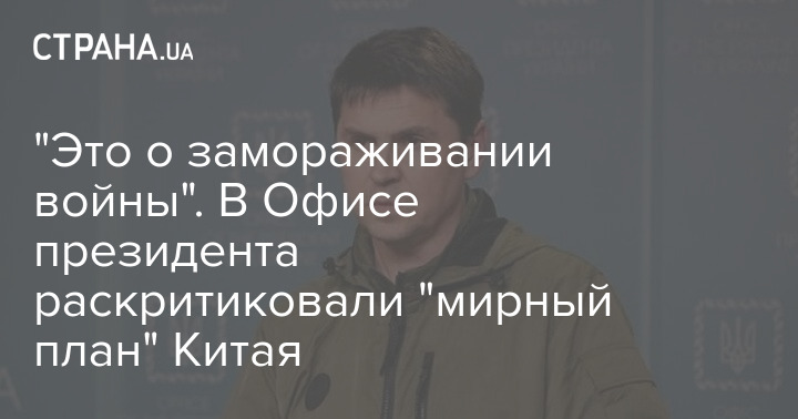 В Офисе президента прокомментировали мирный план урегулирования войны в Украине, который представил Китай.