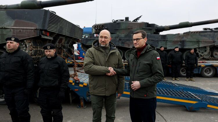 Украинский и польский премьеры встретили танки на украинской земле. Фото: Денис Шмыгаль