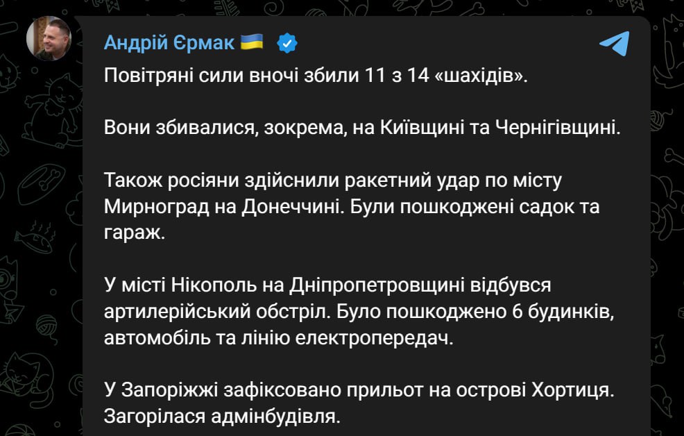 РФ нанесла ракетный удар по Донецкой и Запорожской областях. Иллюстративное фото: t.me/V_Zelenskiy_official