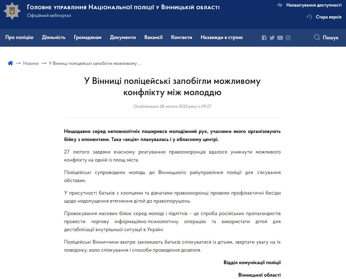 Там заявляют, что провоцирование массовых драк среди молодежи и подростков – "попытка российских пропагандистов провести очередную информационно-психологическую операцию и использовать детей для дестабилизации внутренней ситуации в Украине".