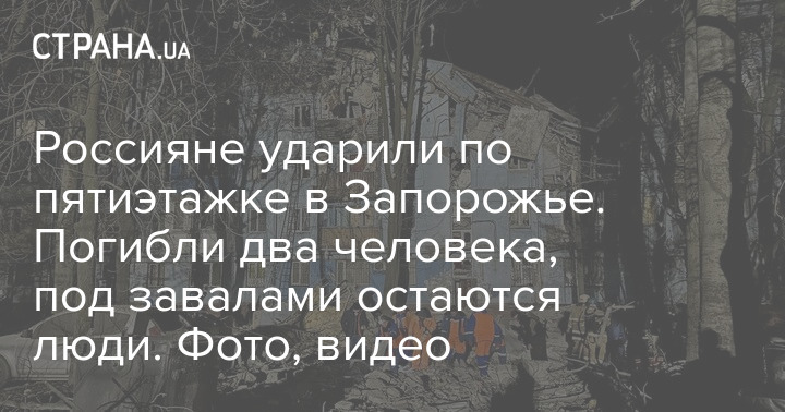 Россияне ударили по пятиэтажке в Запорожье. В результате дом почти полностью разрушен, погибли минимум два человека. Люди еще находятся под завалами.