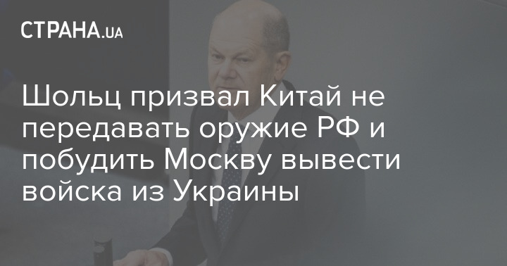 Канцлер Германии Олаф Шольц призвал Китай не передавать оружие России для усиления в войне против Украины. К тому же, он попросил Пекин оказывать давление на Москву, чтобы она отвела свои силы.