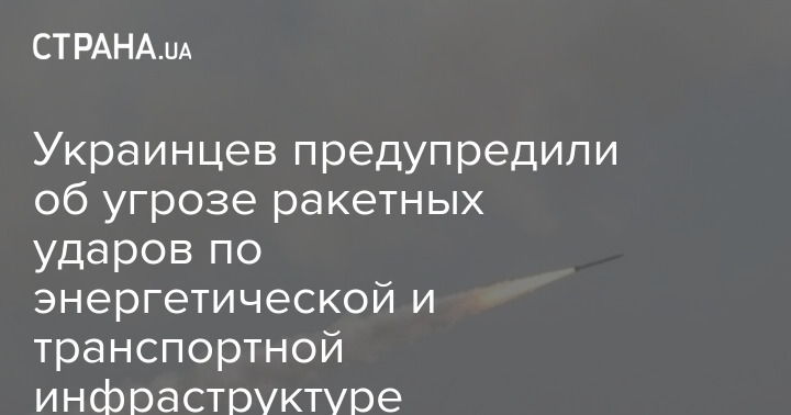 Украинцев предупредили об угрозе ракетных ударов по энергетической и транспортной инфраструктуре