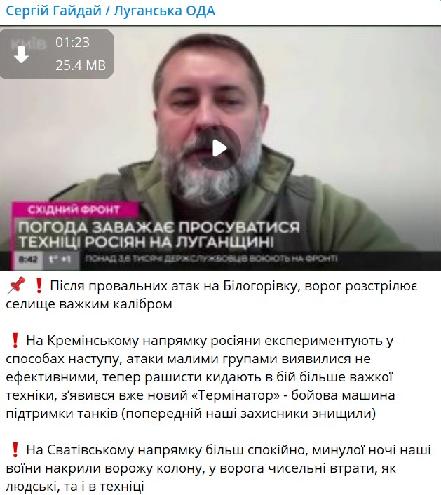Также сообщалось, что в конце февраля Гайдай сказал, что в Луганской области частично началось новое полномасштабное наступление РФ.