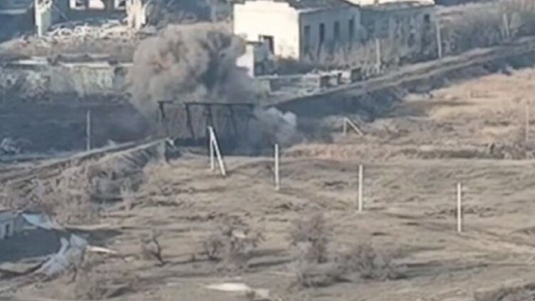 В пабликах ранее появилось видео подрыва моста рядом с Бахмутом. Скриншот