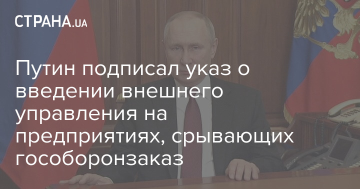 В пятницу, 3 марта, президент РФ Владимир Путин подписал указ о введении внешнего управления на предприятиях, "срывающих гособоронзаказ в условиях военного положения".