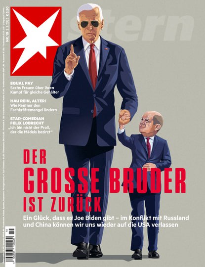 19.57 "Старший брат вернулся". Немецкий журнал "Штерн" выпустил обложку, на которой "большой" Байден ведет за руку "маленького" Шольца.