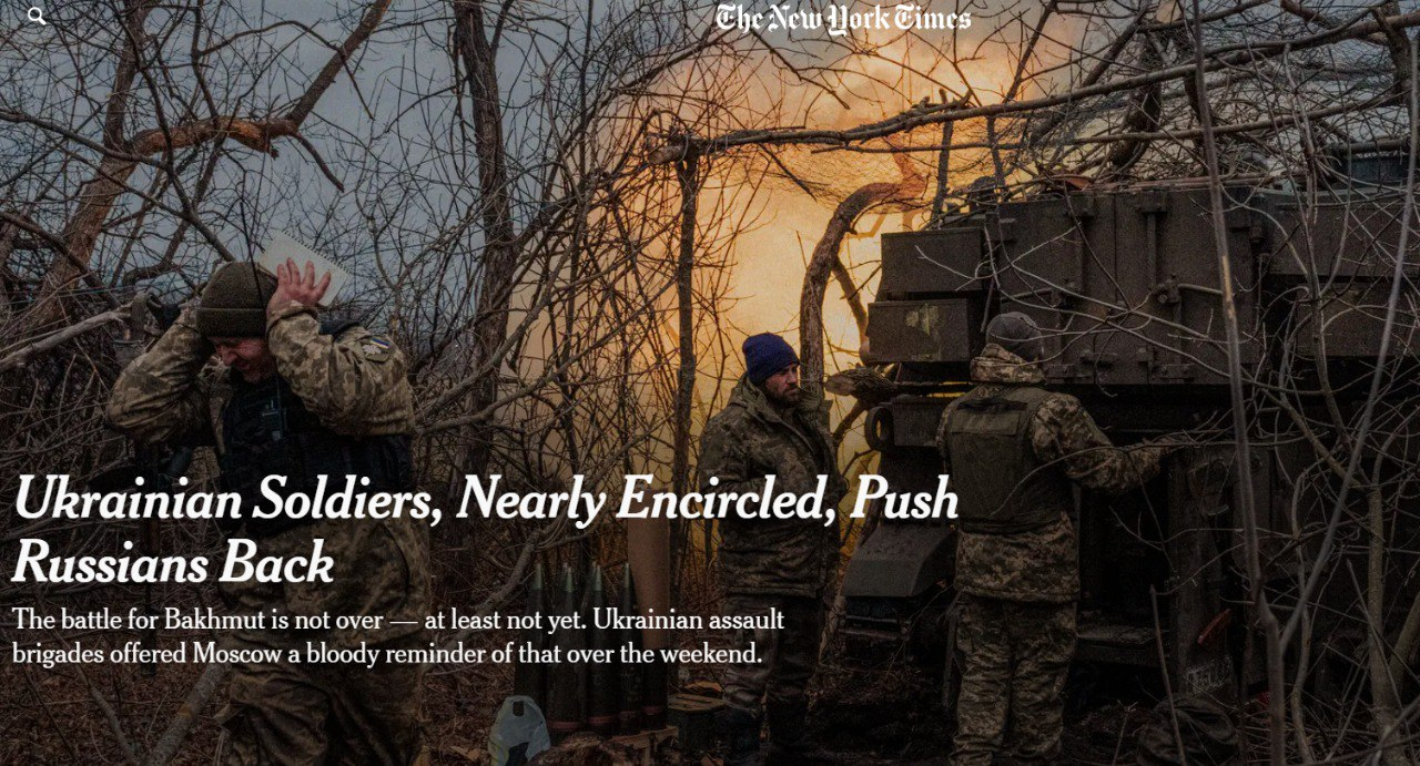 "Украинское командование признало, что их силы в Бахмуте все еще сталкиваются с риском окружения, но бои минувших выходных показали, что военные, которые удивили мир своей настойчивостью, еще не готовы сдавать Бахмут", - отмечает NYT.