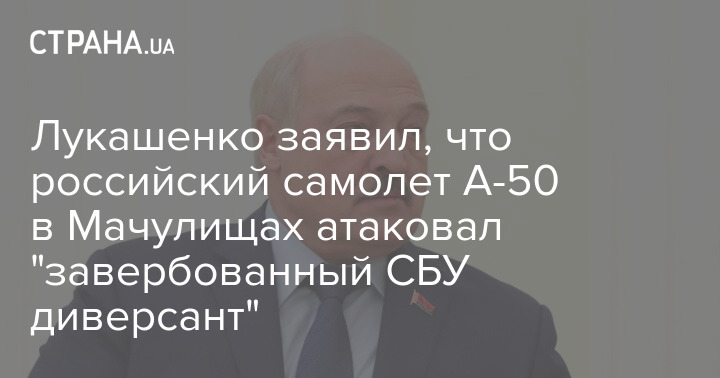 Президент Беларуси Александр Лукашенко заявил о задержании в Беларуси "террориста украинских спецслужб и его пособников", которые якобы причастны к "попытке диверсии в отношении самолета А-50 на аэродроме "Мачулищи".