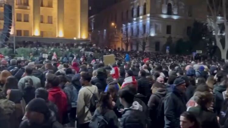 Протестующие в столице Грузии требуют освободить задержанных соратников. Толпа у стен парламента. Видео