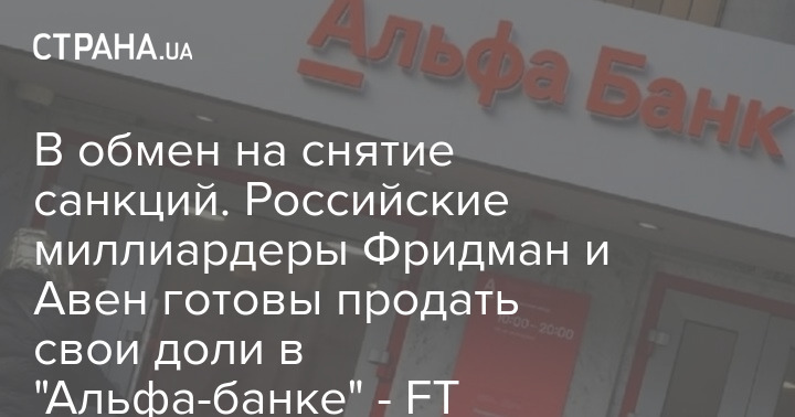 По данным FT, Фридман и Авен получили сигнал о том, что продажа банка поможет снять с них санкции. Они пытаются пока их оспорить в суде.