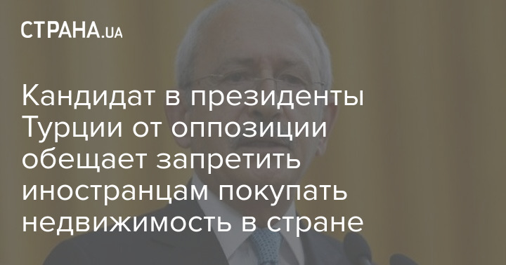Кандидат от турецкой оппозиции на выборах президента страны Кемаль Кылычдароглу в случае своей победы обещает запретить иностранцам покупать недвижимость в Турции в течение как минимум 5 лет.