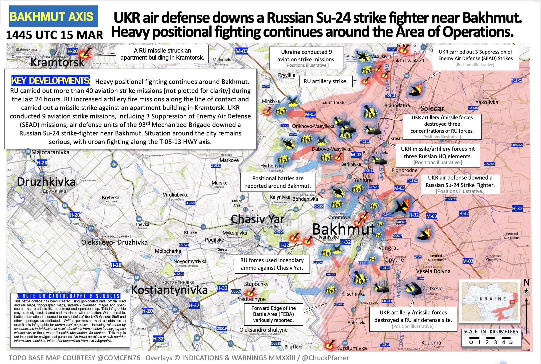 Как именно будут действовать сейчас на Бахмутском направлении - сказать сложно. Но в любом случае, все усилия будут увязаны с тем, готовит ли Украина контрнаступление и где именно оно начнется (к этому вопросу мы еще вернемся ниже).