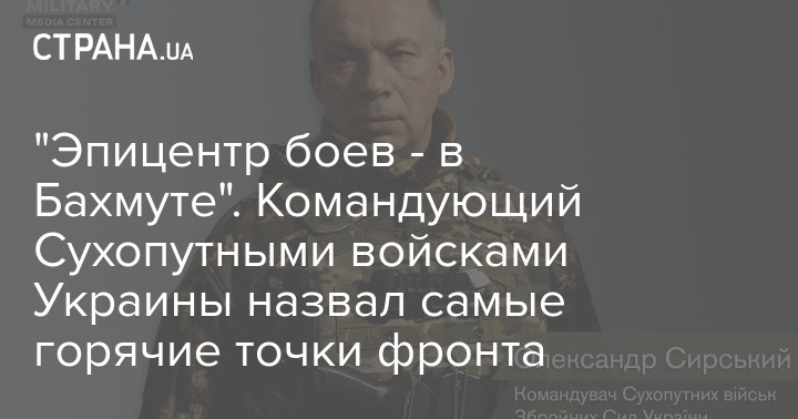 "Фактически по всей восточной линии фронта враг проводит наступательные действия, пытаясь прорвать оборону наших войск и продвинуться в глубину их боевых порядков. Наиболее ожесточенные бои продолжаются в районах Кременной, Торского, Белогоровки, Спорного. Впрочем, эпицентром боевых действий остается Бахмут. Бои за город продолжаются", – сказал Сырский.