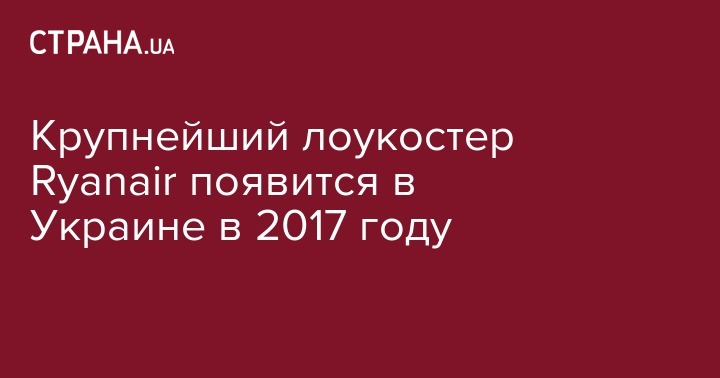 Крупнейший лоукостер Ryanair появится в Украине в 2017 году