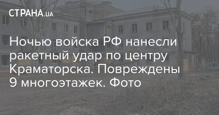 "Враг ночью ударил ракетой по центру Краматорска - повреждены 9 многоэтажек. По предварительной информации, обошлось без пострадавших. Занимаемся ликвидацией последствий", - сообщил Гончаренко.