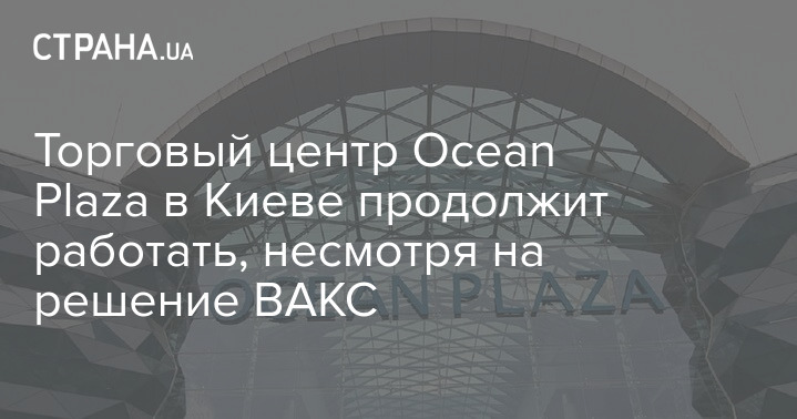 Киевский ТРЦ Ocean Plaza продолжит работать, несмотря на решение ВАКС о конфискации торгового центра.