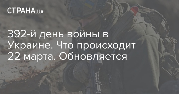В среду, 22 марта, в Украине идет уже 392-й день войны с РФ.