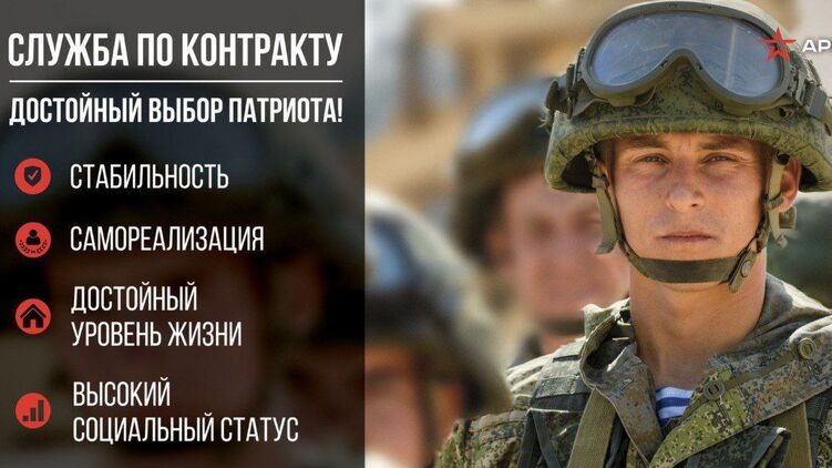 "Служба по контракту - достойный выбор. Поступая на военную службу по контракту, вы выбираете стабильность, широкие возможности для самореализации, достойный уровень жизни и высокий социальный статус", - говорится в одном из подобных постов.