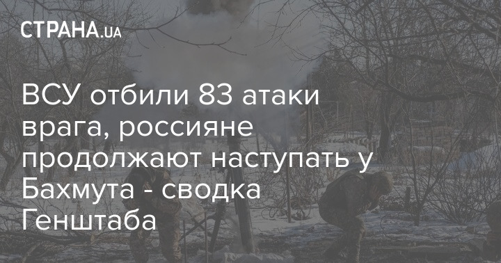 "На Бахмутском направлении враг продолжает вести наступательные действия, теряя значительное количество живой силы, вооружения и военной техники. Наши защитники круглосуточно отбивают многочисленные атаки противника в Бахмуте, Богдановке и Предтечино", - сообщает Генштаб.