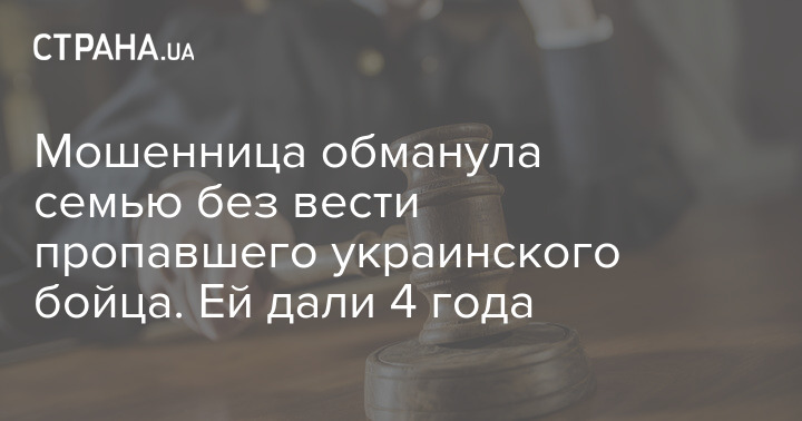 Киевский суд приговорил к четырем годам лишения свободы мошенницу, которая обманула семью без вести пропавшего бойца ВСУ. За 7 тыс. гривен она обещала им помощь в установлении местонахождения бойца.