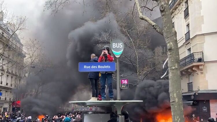 В Париже продолжаются протесты из-за повышения пенсионного возраста. Фото: скриншот с видео