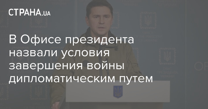 В Офисе президента назвали условия завершения войны дипломатическим путем