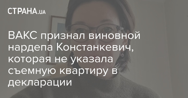 ВАКС признал виновной нардепа Констанкевич, которая не указала съемную квартиру в декларации