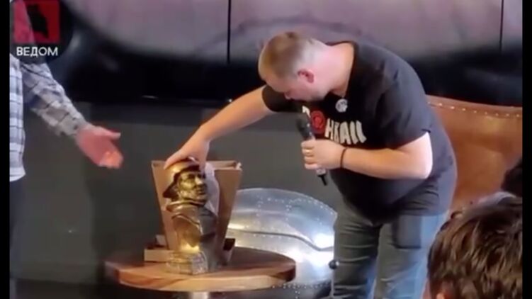 "Настя" сказала, что хочет подарить ему собственноручно созданную скульптуру, но охрана не позволила ее занести, так как "вдруг там бомба". Видимо, тронутый этим Татарский лично разрешил внести бюст, девушка поставила его рядом с ним, на стол по правую руку от Владлена, и когда тот пригласил ее сесть рядом, отказалась, сославшись на стеснительность.
