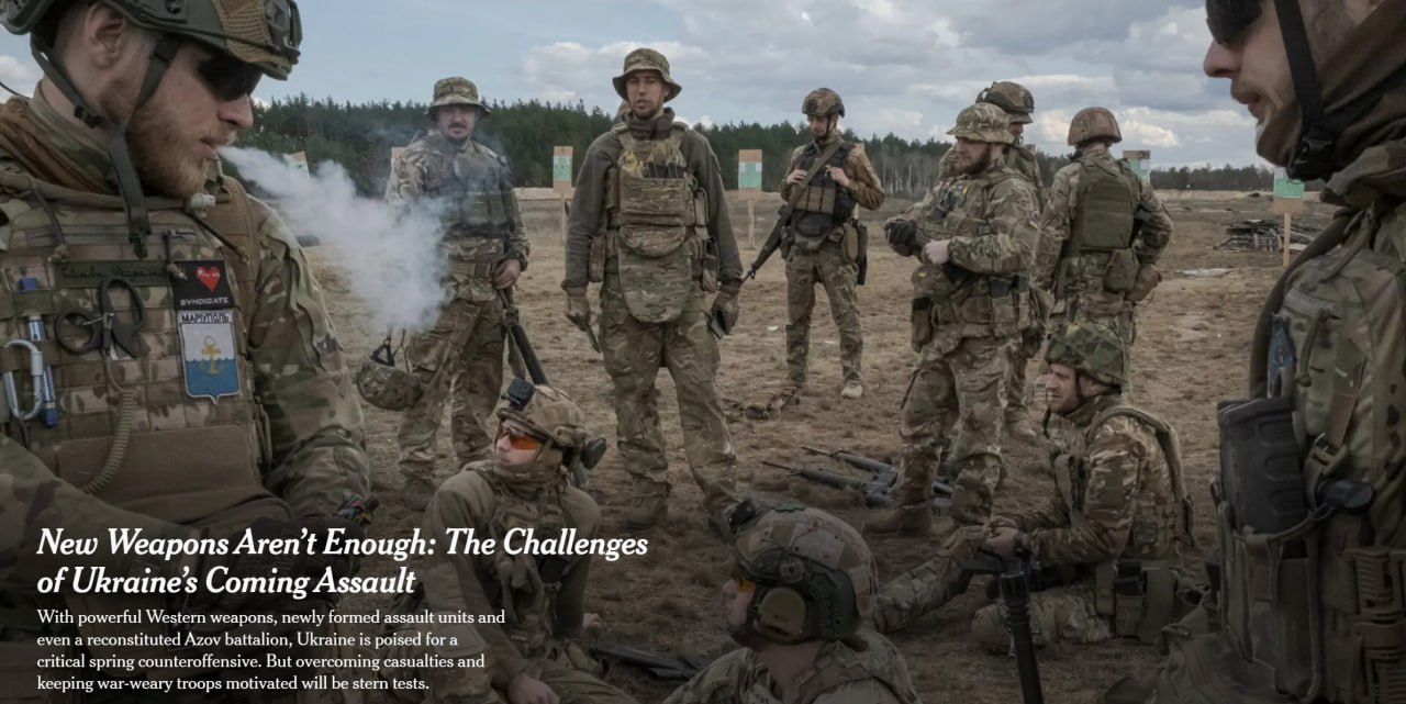 Еще одна проблема - моральный дух украинских военных. Его поддержание "становится все более сложной задачей". "Солдаты на позициях под Бахмутом или выходящие из горнила уличных боев на короткие передышки выражали тревогу по поводу масштабов насилия и смертей".
