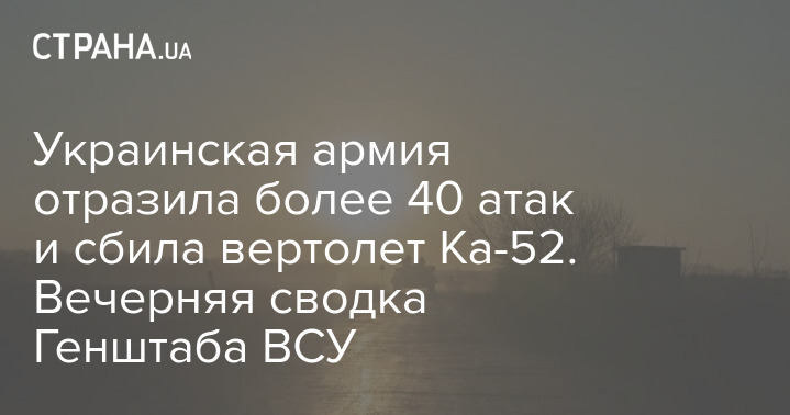 Украинская армия отразила более 40 атак и сбила вертолет Ка-52. Вечерняя сводка Генштаба ВСУ