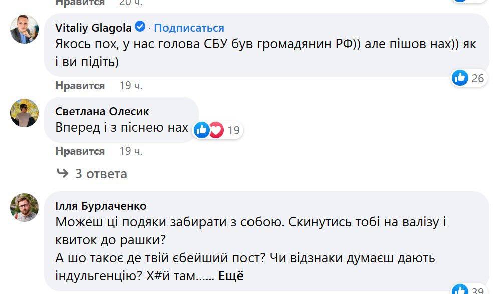 В комментариях его начали действительно призывать уехать из Украины. Пользователь Илья Бурлаченко предложил сброситься Смирнову "на чемодан и билет в рашку".