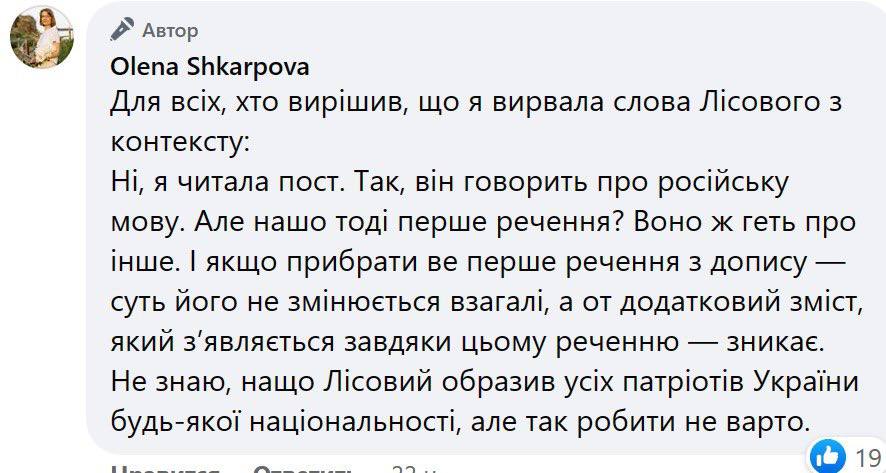 Ряд пользователей соцсетей, не соглашаясь со Смирновым, критикуют также и Лисового - за его фразу о том, что "человек является патриотом той страны, на языке которой он говорит со своими детьми".