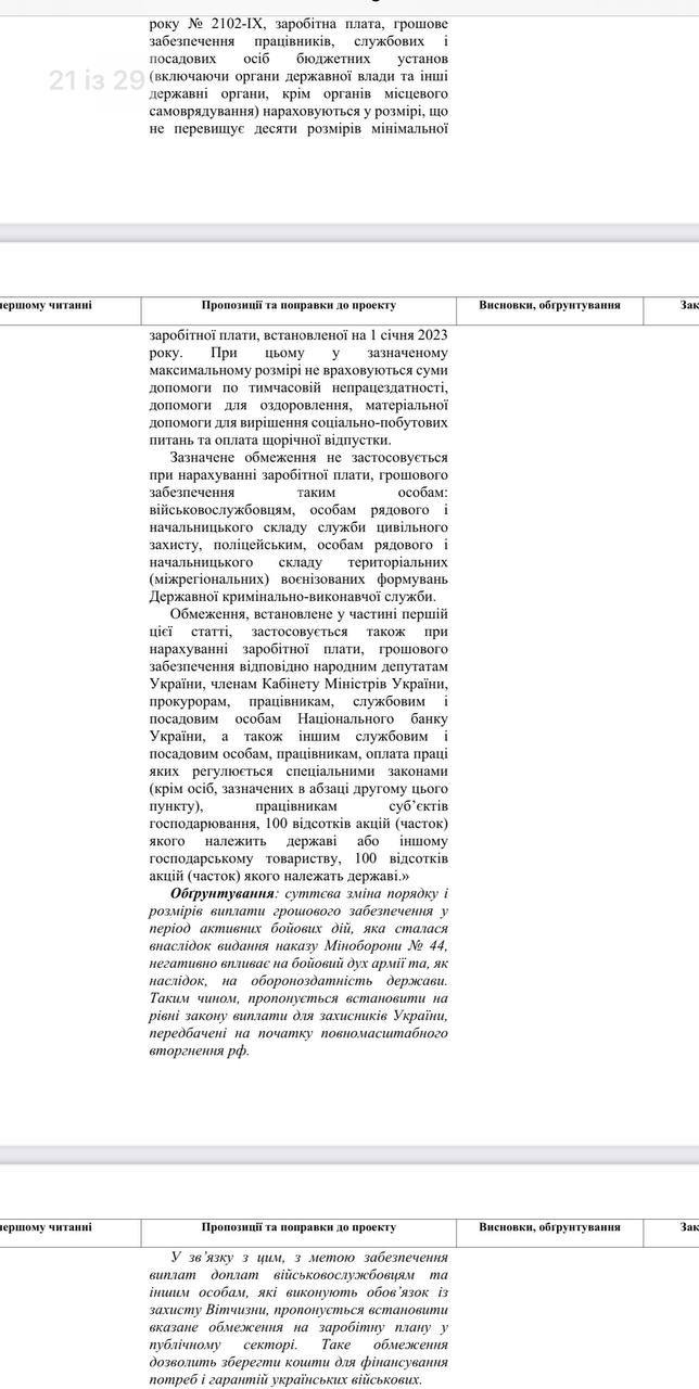 Пока правильно будет говорить так: денежное довольствие работников, служебных и должностных лиц бюджетных учреждений/госпредприятий ограничили до десяти размеров минимальной заработной платы, - пишет Железняк.