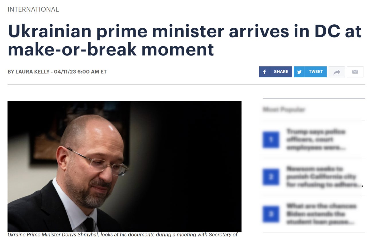 На вопрос, как утечка документов Пентагона влияет на контрнаступление Украины, Шмыгаль заявил, что "Украина освободит свои земли".