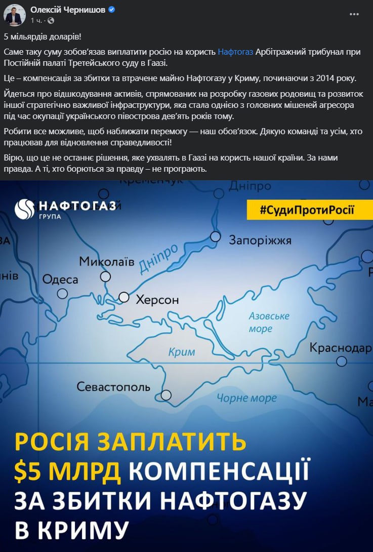 В списке заблокированных активов - корпоративные права на 40 украинских предприятий и 30 газовых скважин, где добывались промышленные масштабы газа.