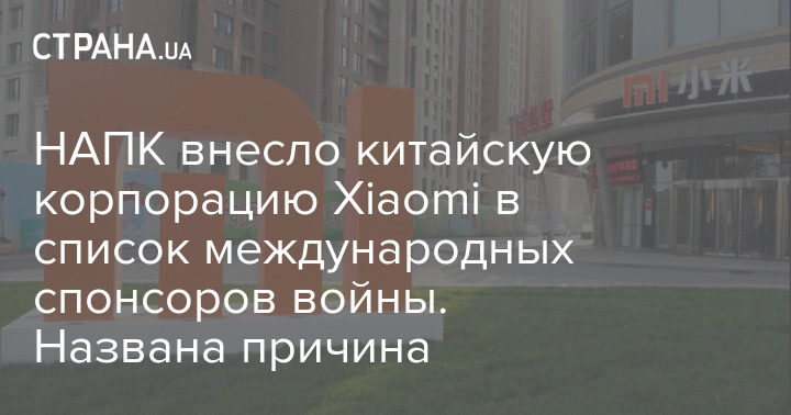Национальное агентство по предотвращению коррупции (НАПК) внесло китайскую корпорацию Xiaomi в список международных спонсоров войны.