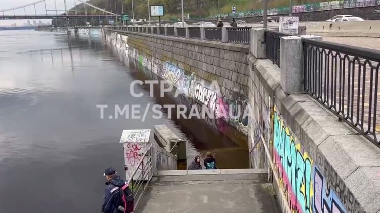 В Киеве из-за подъема воды затопило набережную в центре города. Видео